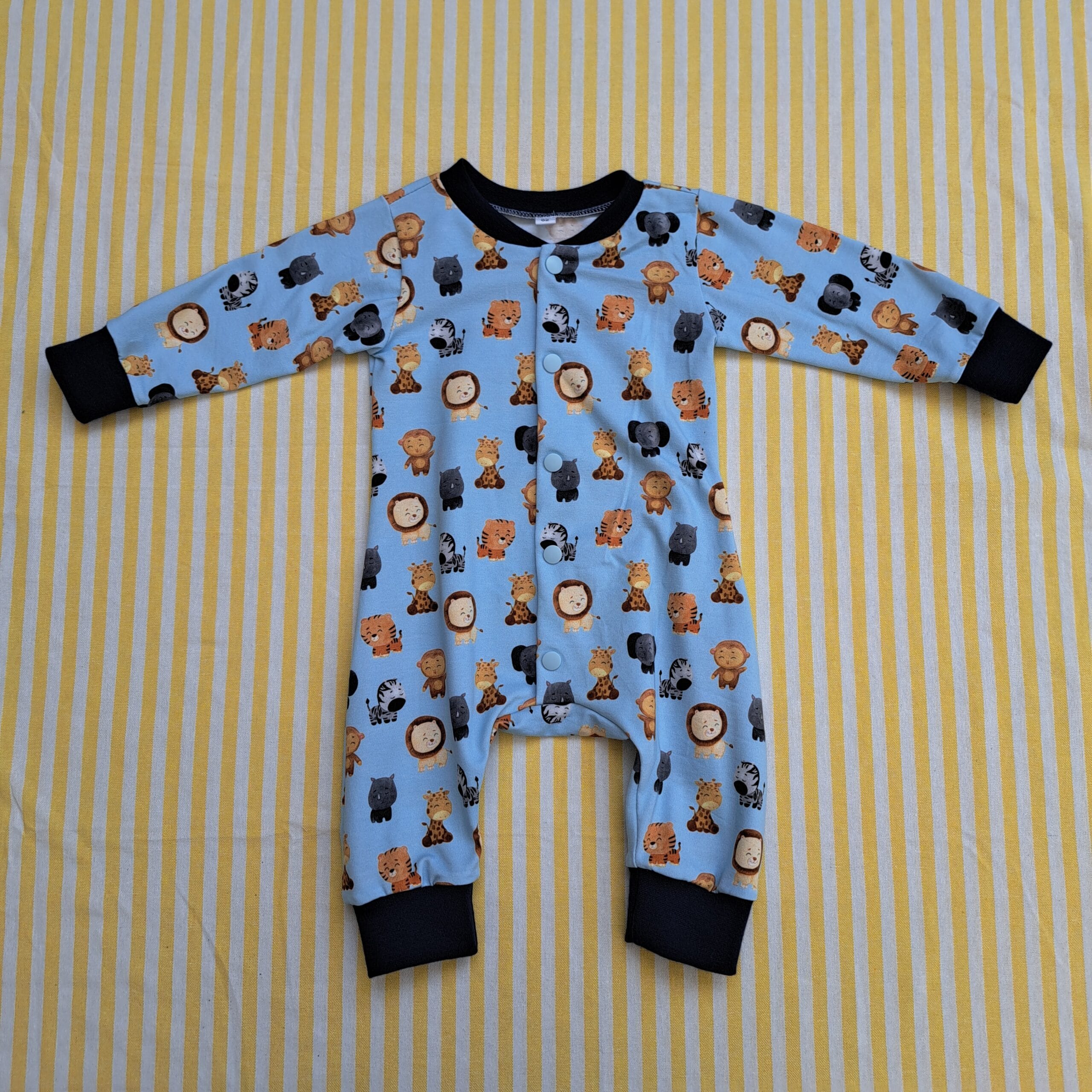 boxpakje big five lichtblauw maat 62, sluit met drukknoopjes. Heerlijk pyjamapakje.