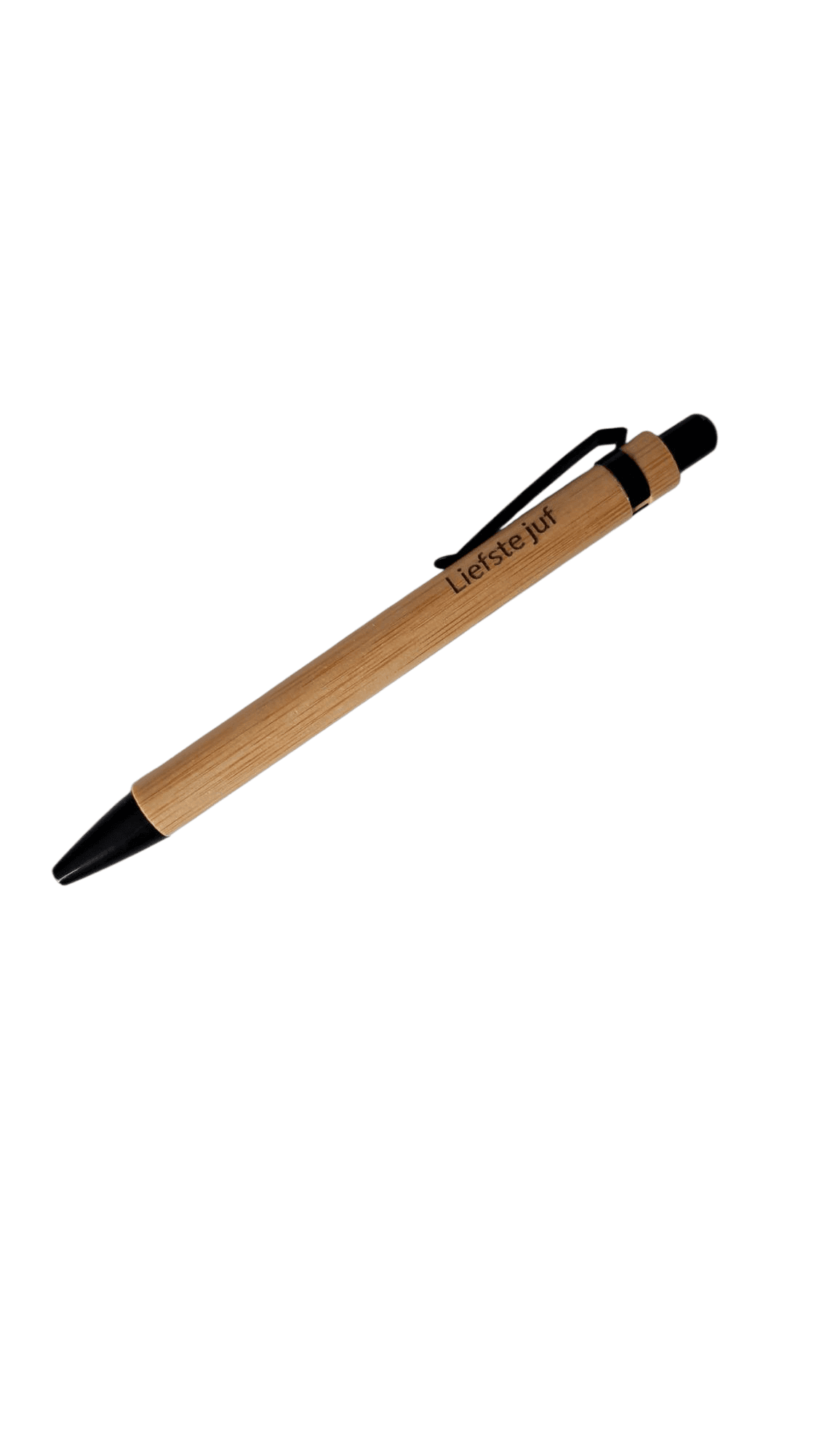Mooie houten pennen met daarin “liefste juf” of “leukste meester” gegraveerd. De pennen worden gemaakt door Marchien van Studio Jong. Omdat het houten pennen zijn is elke gravering uniek en kan van elkaar verschillen.